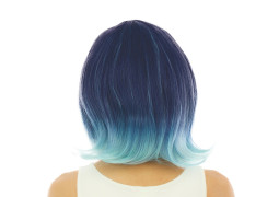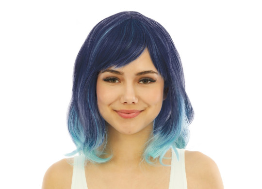 Perruque manga mi-longue bleue avec frange, idéale pour compléter un déguisement ou un cosplay.