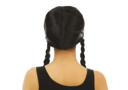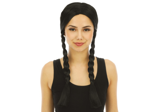 Perruque style Mercredi avec nattes, idéale pour compléter un déguisement inspiré du personnage culte.
