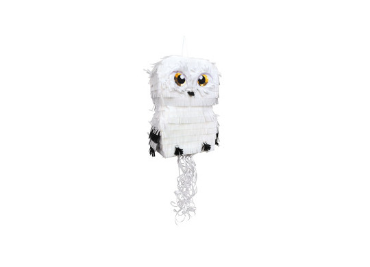 Pinata en forme de chouette blanche, en carton décoré, prête à être remplie de bonbons ou petits cadeaux. Idéale pour animer les anniversaires, fêtes ou événements pour enfants. Facile à suspendre et à casser, elle apporte une touche festive et ludique à vos célébrations.