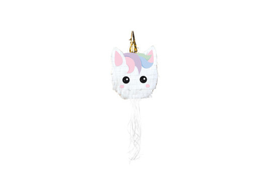 Pinata en forme de frimousse baby licorne , en carton décoré, prête à être remplie de bonbons ou petits cadeaux. Idéale pour animer les anniversaires, fêtes ou événements pour enfants. Facile à suspendre et à casser, elle apporte une touche festive et ludique à vos célébrations.