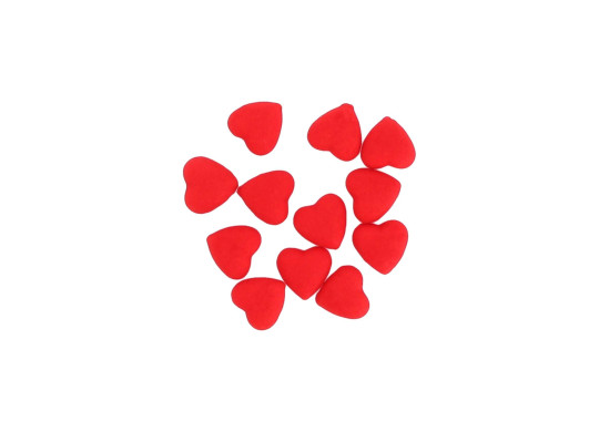 Lot de 12 cœurs floqués rouges de 2 cm. Parfaits pour décorer vos tables ou créer des petits cadeaux lors de Saint-Valentin ou fêtes romantiques.