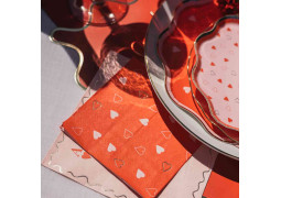Lot de 20 serviettes cocktail rouges décorées de cœurs, parfaites pour une table festive et romantique.