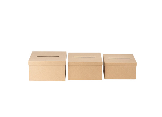 Urne carrée en kraft, disponible en 3 tailles (22 cm, 23 cm et 25 cm), idéale pour recueillir les cartes et messages de vos invités lors de vos événements.