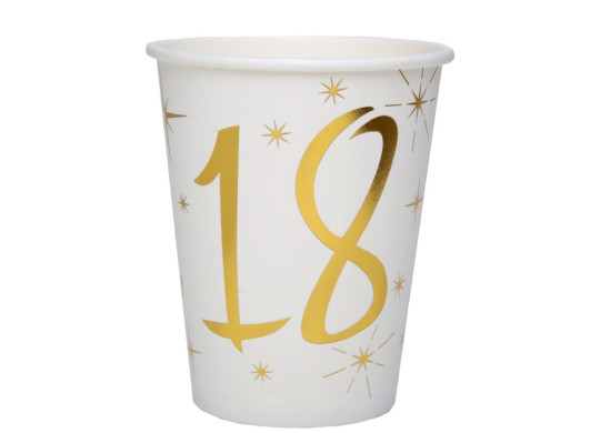 > Voir la description complèteCes gobelets en carton anniversaire de 27 cl sont décorés de chiffres dorés sur fond blanc. Disponibles pour plusieurs âges de 18 à 80 ans, ils apportent une touche festive à votre table. Pratiques pour servir vos boissons, ils s’intègrent facilement à votre décoration d’anniversaire.